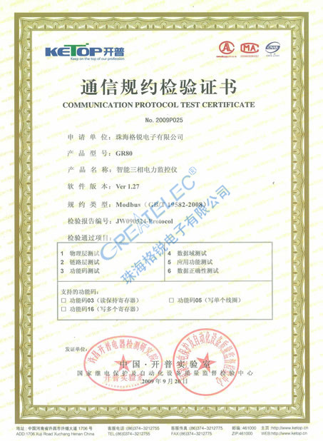 GR80通信規約檢驗證書(shū)