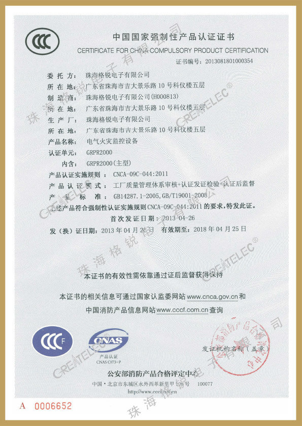 當前位置: 公司資質(zhì) 型式檢驗報告/3C證書(shū) > 電氣火災3C證書(shū)